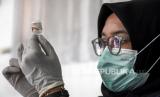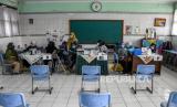 Vaksinator bersiap untuk melakukan vaksinasi di SMPN 2 Bandung, Jalan Sumatera, Kota Bandung, Jumat (21/5). Pemerintah Kota Bandung melakukan percepatan vaksinasi Covid-19 bagi 36 ribu guru dan tenaga pendidik yang ditargetkan rampung pada akhir Mei 2021 guna mengejar target pembelajaran tatap muka pada Juli 2021 mendatang. Foto: Republika/Abdan Syakura (FOTO : REPUBLIKA/ABDAN SYAKURA)