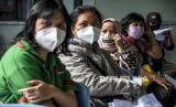 Sejumlah guru dan tenaga pendidik menunggu giliran untuk menjalani pemeriksaan kesehatan sebelum disuntik vaksin Covid-19 di SMPN 2 Bandung, Jalan Sumatera, Kota Bandung, Jumat (21/5). Pemerintah Kota Bandung melakukan percepatan vaksinasi Covid-19 bagi 36 ribu guru dan tenaga pendidik yang ditargetkan rampung pada akhir Mei 2021 guna mengejar target pembelajaran tatap muka pada Juli 2021 mendatang. (FOTO : REPUBLIKA/ABDAN SYAKURA)