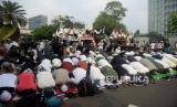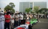 Massa Solidaritas Shalat Ashar Berjamaah di Depan Kedubes AS