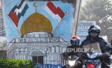 REPUBLIKA.CO.ID,JAKARTA -- Warga melintasi mural bertema Palestina di Jl Ciledug Raya, Jakarta, Jumat (21/5/2021). Mural tersebut merupakan bentuk solidaritas warga terhadap rakyat Palestina yang sedang terlibat konflik dengan Israel.