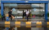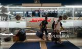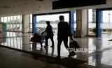 Petugas membawa tas koper milik pemudik saat tiba di Terminal Pulo Gebang, Jakarta, Sabtu (22/5). Berdasarkan data dari Dinas Perhubungan DKI Jakarta Jumlah pemudik yang tiba di Terminal Pulo Gebang pada tanggal (22/5) pukul 00.00 WIB hingga 13.59 WIB sebanyak 250 penumpang. Direktur Lalu Lintas Polda Metro Jaya Kombes Pol Sambodo Purnomo Yogo memperkirakan puncak arus balik kendaraan menuju Jabodetabek akan terjadi pada Minggu besok (23/5). (FOTO : Republika/Thoudy Badai)