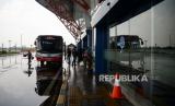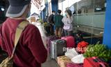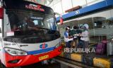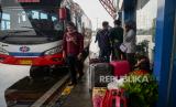 Pemudik tiba di Terminal Pulo Gebang, Jakarta, Sabtu (22/5). Berdasarkan data dari Dinas Perhubungan DKI Jakarta Jumlah pemudik yang tiba di Terminal Pulo Gebang pada tanggal (22/5) pukul 00.00 WIB hingga 13.59 WIB sebanyak 250 penumpang. Direktur Lalu Lintas Polda Metro Jaya Kombes Pol Sambodo Purnomo Yogo memperkirakan puncak arus balik kendaraan menuju Jabodetabek akan terjadi pada Minggu besok (23/5). Republika/Thoudy Badai (FOTO : Republika/Thoudy Badai)