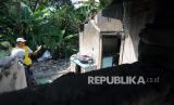 Petugas Polri membersihkan sisa bangunan rumah warga yang rusak akibat gempa di Desa Jabung Kecamatan Talun, Blitar, Jawa Timur, Sabtu (22/5/2021). BPBD setempat mendata sebanyak 112 bangunan rumah warga dan fasilitas umum rusak ringan dan berat serta seorang warga mengalami luka ringan akibat gempa magnitudo 5,9 SR yang berpusat di lepas pantai selatan Blitar pada Jumat (21/5/2021) malam. (FOTO : Antara/Irfan Anshori)