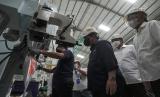 REPUBLIKA.CO.ID, KEBUMEN -- Menteri BUMN Erick Thohir bersama Menteri Perdagangan Muhammad Lutfi, Menteri Koperasi dan UMKM Teten Masduki , dan Dirut Bank Mandiri Darmawan Junaidi melihat proses pengolahan beras di Sentra Pengolahan Beras Terpadu (SPBT) Kebumen, Jateng, Ahad (23/5).