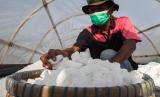 REPUBLIKA.CO.ID, KEBUMEN -- Pekerja mengumpulkan kristal garam yang terbentuk di dalam tunnel milik Kelompok Petani Garam Cirat Segoro Renges, Desa Tlogo Pragoto, Mirit, Kebumen, Jateng, Ahad (23/5).