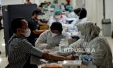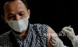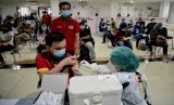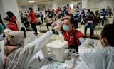 REPUBLIKA.CO.ID, JAKARTA -- Tenaga kesehatan menyuntikan vaksin Covid-19 Astrazeneca kepada pekerja ritel di GOR Tanjung Duren, Jakarta Barat, Senin (24/5). Berdasarkan data Kementerian Kesehatan, jumlah penerima vaksin Covid-19 dosis pertama pada Ahad (23/5) sebanyak 14.890.933 orang atau bertambah 75.267 dibanding satu hari sebelumnya dengan target 40.349.049 orang mendapat vaksinasi Covid-19 di Indonesia.