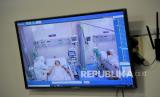 Petugas medis menangani pasien terlihat di layar pemantau ruang ICU, Gedung COVID lantai II, RSUP Dr.M.Djamil, Padang, Sumatera Barat, Senin (24/5/2021). RSUP Dr.M.Djamil Padang menambah ruangan isolasi dan perawatan dengan 84 tempat tidur, untuk mengantisipasi lonjakan pasien COVID-19 pasca Lebaran pada Mei 2021. (FOTO : Antara/Iggoy el Fitra)
