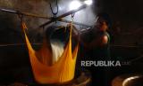 REPUBLIKA.CO.ID, BULUKUMBA -- Pekerja mengukur dan memotong tahu di salah satu industri rumahan Desa Pangale, Kabupaten Mamuju Tengah, Sulawesi Barat, Selasa (25/05). Industri pembuatan tahu dan tempe di daerah tersebut mengeluhkan tingginya harga kedelai yang mencapai Rp12.000 per kilogram dari harga normal Rp8.000 per kilogram, sehingga berdampak pada kenaikan harga tahu menjadi Rp65.000 per papan.