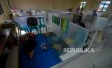 Warga tertidur di posko pengungsian Kampung Bojongasih, Dayeuhkolot, Kabupaten Bandung, Jawa Barat, Selasa (25/5/2021). BPBD Kabupaten Bandung mencatat, sebanyak 16.887 kk atau 59.879 jiwa di empat kecematan terdampak banjir luapan Sungai Citarum akibat intensitas hujan yang tinggi pada Senin (24/5/2021) sore hingga malam hari. (FOTO : ANTARA/RAISAN AL FARISI)
