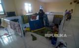 Warga mengungsi di posko pengungsian Kampung Bojongasih, Dayeuhkolot, Kabupaten Bandung, Jawa Barat, Selasa (25/5/2021). BPBD Kabupaten Bandung mencatat, sebanyak 16.887 kk atau 59.879 jiwa di empat kecematan terdampak banjir luapan Sungai Citarum akibat intensitas hujan yang tinggi pada Senin (24/5/2021) sore hingga malam hari. (FOTO : ANTARA/RAISAN AL FARISI)