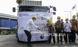 REPUBLIKA.CO.ID, Menteri Perindustrian Agus Gumiwang Kartasasmita, Gubernur Jawa Timur Khofifah Indar Parawansa, Presiden Direktur Integra Group Halim Rusli melepas ekspor pintu kayu PT. Woodone Integra Indonesia di Krian, Sidoarjo, Jawa Timur, Selasa (25/5/2021).