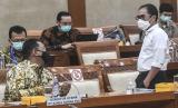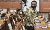 REPUBLIKA.CO.ID, JAKARTA -- Direktur Utama Kimia Farma Verdi Budidarmo bersiap mengikuti Rapat Dengar Pendapat dengan Komisi VI di Kompleks Parlemen, Senayan, Jakarta, Selasa (25/5/2021). Rapat tersebut menindaklanjuti penyelesaian kasus pemalsuan Antigen dan progres pembuatan vaksin.
