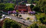 Foto udara suasana bangunan kuno tempat ibadah Kelenteng Tjoe An Kiong (kiri) yang diperkirakan dibangun pada sekitar abad ke-15 di Lasem, Kabupaten Rembang, Jawa Tengah, Selasa (25/5/2021). Kemendikbud Ristek berkolaborasi dengan Yayasan Lasem Heritage bersama Tim Ahli Cagar Budaya (TACB) Nasional, Balai Pelestarian Cagar Budaya, Pusat Dokumentasi Arsitektur Indonesia, akademisi serta berbagai komunitas masyarakat setempat melakukan kegiatan Survei Pendataan Objek Diduga Cagar Budaya di Lasem pada 24 hingga 28 Mei 2021 mendatang sebagai upaya merekomendasikan penetapan sejumlah area di Kecamatan Lasem menjadi Kawasan Cagar Budaya Nasional. (FOTO : ANTARA/AJI STYAWAN)