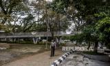 Seorang petugas melakukan patroli di area Taman Lalu Lintas, Jalan Belitung, Kota Bandung, Rabu (26/5). Pemerintah Kota Bandung menutup sementara enam tempat wisata di Bandung salah satunya Taman Lalu Lintas pada 23 Mei hingga 1 Juni 2021 guna mengantisipasi potensi kerumunan yang dapat menyebarkan Covid-19. Foto: Republika/Abdan Syakura (FOTO : REPUBLIKA/ABDAN SYAKURA)