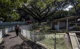 Seorang petugas melakukan patroli di area Taman Lalu Lintas, Jalan Belitung, Kota Bandung, Rabu (26/5). Pemerintah Kota Bandung menutup sementara enam tempat wisata di Bandung salah satunya Taman Lalu Lintas pada 23 Mei hingga 1 Juni 2021 guna mengantisipasi potensi kerumunan yang dapat menyebarkan Covid-19. (FOTO : REPUBLIKA/ABDAN SYAKURA)