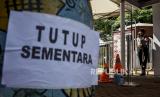 Seorang petugas melakukan patroli di loket pemesanan tiket di Taman Lalu Lintas, Jalan Belitung, Kota Bandung, Rabu (26/5). Pemerintah Kota Bandung menutup sementara enam tempat wisata di Bandung salah satunya Taman Lalu Lintas pada 23 Mei hingga 1 Juni 2021 guna mengantisipasi potensi kerumunan yang dapat menyebarkan Covid-19. Foto: Republika/Abdan Syakura (FOTO : REPUBLIKA/ABDAN SYAKURA)