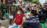 REPUBLIKA.CO.ID, PEKANBARU -- Petugas tim kesehatan Polresta Pekanbaru menyuntikkan vaksin Covid-19 kepada warga di Jalan Sudirman, Kota Pekanbaru, Riau, Rabu (26/5).