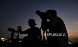 REPUBLIKA.CO.ID, KLATEN -- Proses gerhana bulan total terlihat dari Candi Plaosan, Klaten, Jawa Tengah, Rabu (26/5). Gerhana bulan total atau super blood moon ini bisa disaksikan hampir di seluruh Indonesia. Fenomena alam ini terjadi setiap 195 tahun.