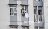 Pasien positif COVID-19 berada di jendela salah satu tower di Rumah Sakit Darurat COVID-19 (RSDC), Wisma Atlet, Kemayoran, Jakarta, Rabu (26/5/2021). Berdasarkan data pengelola, jumlah pasien COVID-19 yang dirawat di RSDC Wisma Atlet Kemayoran saat ini menunjukkan peningkatan sebesar 10 persen dalam kurun waktu sembilan hari terakhir terhitung sejak Selasa (18/5/2021) yaitu sebesar 15,02 persen menjadi 25,21 persen. (FOTO : Antara/M Risyal Hidayat)