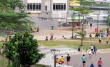 REPUBLIKA.CO.ID, JAKARTA -- Sejumlah pasien positif COVID-19 berolahraga di Rumah Sakit Darurat COVID-19 (RSDC), Wisma Atlet, Kemayoran, Jakarta, Rabu (26/5/2021).