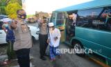 REPUBLIKA.CO.ID, KUDUS -- Petugas kepolisian menurunkan wisatawan yang hendak masuk menuju Kota Kudus di jalan jalur pantura Jati, Kudus, Jawa Tengah, Rabu (26/5/2021). Selain memutar balik sejumlah kendaraan wisata, petugas gabungan melakukan pemeriksaan tes Antigen COVID-19 kepada penumpang menyusul melonjaknya kasus COVID-19 di wilayah itu yang menjadi kasus tertinggi di Jawa Tengah.
