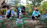 Menteri Pariwisata dan Ekonomi Kreatif (Menparekraf) Sandiaga Salahuddin Uno (kanan), artis Baim Wong (tengah) dan Youtuber Yudist Ardhana (kiri) menanam pohon saat sosialisasi Anugerah Desa Wisata Indonesia 2021 di Kampung Wisata Banjar Tarukan, Desa Mas, Ubud, Gianyar, Bali, Rabu (26/5/2021). Anugerah Desa Wisata Indonesia 2021 yang ditargetkan akan diikuti 500 desa wisata di seluruh Indonesia tersebut diharapkan dapat mendorong desa wisata sebagai destinasi pariwisata berkelas dunia, berdaya saing dan berkelanjutan serta meningkatkan sektor perekonomian desa. (FOTO : Antara/Fikri Yusuf)