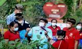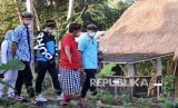 REPUBLIKA.CO.ID, GIANYAR -- Menteri Pariwisata dan Ekonomi Kreatif (Menparekraf) Sandiaga Salahuddin Uno (tengah) dan artis Baim Wong (ketiga kiri) memanen sayuran bersama warga saat sosialisasi Anugerah Desa Wisata Indonesia 2021 di Kampung Wisata Banjar Tarukan, Desa Mas, Ubud, Gianyar, Bali, Rabu (26/5).