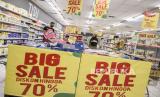 Sejumlah warga berbelanja di gerai Giant Express, Jalan PHH Mustofa, Kota Bandung, Kamis (27/5). PT Hero Supermarket Tbk akan menutup seluruh gerai Giant pada akhir Juli 2021 akibat perilaku konsumen yang beralih dari ritel berkonsep hypermarket seperti Giant ke sektor peralatan rumah tangga, kesehatan, kecantikan dan keperluan sehari-hari serta diperparah dengan kondisi pandemi Covid-19. Foto: Republika/Abdan Syakura (FOTO : REPUBLIKA/ABDAN SYAKURA)
