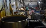 Pekerja berada di dekat peralatan produksi tahu dan tempe di salah satu industri rumahan di Sentra Industri Tahu Cibuntu, Babakan Ciparay, Kota Bandung, Jumat (28/5). Sejumlah industri pembuatan tahu dan tempe di Sentra Industri Tahu Cibuntu melakukan aksi mogok produksi mulai dari tanggal 28-30 Mei mendatang akibat tingginya harga kedelai yang mencapai Rp11 ribu per kilogram dan berdampak pada kenaikan harga tahu dan tempe sebesar 15-25 persen atau sekitar Rp1.200 per potong. (FOTO : REPUBLIKA/ABDAN SYAKURA)