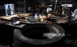 Pekerja merapikan peralatan produksi tahu dan tempe di salah satu industri rumahan di Sentra Industri Tahu Cibuntu, Babakan Ciparay, Kota Bandung, Jumat (28/5). Sejumlah industri pembuatan tahu dan tempe di Sentra Industri Tahu Cibuntu melakukan aksi mogok produksi mulai dari tanggal 28-30 Mei mendatang akibat tingginya harga kedelai yang mencapai Rp11 ribu per kilogram dan berdampak pada kenaikan harga tahu dan tempe sebesar 15-25 persen atau sekitar Rp1.200 per potong. (FOTO : REPUBLIKA/ABDAN SYAKURA)