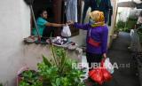 REPUBLIKA.CO.ID, JAKARTA -- Petugas memberikan paket bahan pangan ke warga yang menjalani isolasi mandiri di Jalan As-Syafiiyah, Cipayung, Jakarta, Jumat (28/5).