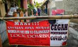 Warga melintas di Jalan As-Syafiiyah yang menerapkan lockdown skala mikro, Cipayung, Jakarta, Jumat (28/5/2021). Pemerintah setempat menerapkan lockdown skala mikro karena 104 warga di RT03/RW03 Kelurahan Cilangkap, Kecamatan Cipayung, Jakarta Timur terkonfrimasi positif COVID-19 yang tertular saat interaksi di Hari Raya Idul Fitri 1442 H. (FOTO : Antara/Galih Pradipta)