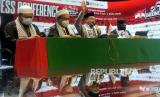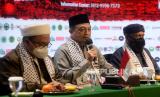 Pimpinan AQL Islamic Center KH Bachtiar Nasir (tengah)memberikan keterangan terkait Aksi Munasharah dan Merawat Kemenangan Dari Masjid Indonesia untuk Masjidil Aqsha, Al Quds dan Palestina Merdeka di Jakarta, Jumat (28/5). Aksi dukungan terhadap pembebasan masjidil aqsha dan perjuangan kemerdekaan Palestina tersebut akan dilaksanakan pada Ahad (30/5) dimulai pukul 06.00 sd 10.00 WIB yang akan diikuti oleh ribuan masjid dari seluruh pelosok negeri.Prayogi/Republika. (FOTO : Prayogi/Republika.)