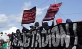 REPUBLIKA.CO.ID, MAKASSAR -- Sejumlah suporter PSM Makassar melakukan aksi unjuk rasa di depan Kantor DPRD Sulsel di Makassar, Sulawesi Selatan, Jumat (28/5/2021). Dalam aksi tersebut mereka mendesak pemerintah setempat untuk melanjutkan pembangunan Stadion Mattoanging.