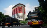 REPUBLIKA.CO.ID, JAKARTA -- Petugas kepolisian berjaga di area Gedung Merah Putih KPK, Jakarta, Senin (31/5).