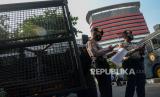 Petugas kepolisian berjaga di area Gedung Merah Putih KPK, Jakarta, Senin (31/5). Penjagaan tersebut dilakukan sebagai antisipasi gelombang aksi serta penjagaan objek vital atas polemik terkait keputusan pimpinan KPK menonaktifkan sejumlah pegawai KPK yang tak lulus Tes Wawasan Kebangsaan (TWK) dalam proses alih status menjadi Aparatur Sipil Negara (ASN). (FOTO : Republika/Thoudy Badai)