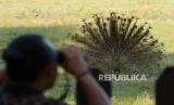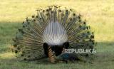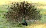 REPUBLIKA.CO.ID, Merak hijau (pavo muticus) jantan mengembangkan bulu ekornya untuk menarik perhatian merak betina di Savana Sadengan, Taman Nasional Alas Purwo, Banyuwangi, Jawa Timur, Senin (31/5). Saat ini di TN Alas Purwo memasuki musim kawin merak hijau yang diperkirakan berlangsung hingga bulan september. ANTARA FOTO/Budi Candra Setya/hp.