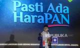 Ketua Umum PAN Zulkifli Hasan saat memberikan sambutan di Gedung Nusantara IV, Kompleks Parlemen, Jakarta, Selasa (1/6). PAN menggelar acara launching lagu berjudul Pasti Ada Harapan dan Penggalangan Dana Solidaritas Palestina yang sudah terkumpul sekitar Rp 3,7 Miliar dari petinggi partai, DPW dan sayap-sayap partai. (FOTO : Republika/Putra M. Akbar)