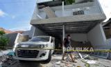 REPUBLIKA.CO.ID, JIMBARAN -- Warga melewati garis polisi saat mengamati kondisi bangunan rumah yang rusak akibat ledakan keras di kompleks Cluster Palm Puri Gading Loft B30, Kelurahan Jimbaran, Badung, Bali, Selasa (1/6).
