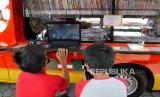 REPUBLIKA.CO.ID, YOGYAKARTA -- Anak-anak memanfaatkan layanan Mobil Internet dan Layanan Kewilayahan (Monika) milik Perpustakaan Kota Yogyakarta di Demangan, Yogyakarta, Rabu (2/6).