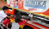 Petugas membantu anak-anak memanfaatkan internet gratis dari layanan Mobil Internet dan Layanan Kewilayahan (Monika) milik Perpustakaan Kota Yogyakarta di Demangan, Yogyakarta, Rabu (2/6). Di Monika anak-anak bisa memanfaatkan layanan internet gratis menggunakan laptop. Selain itu, juga bisa membaca buku atau bermain bersama. Layanan ini mendatangi masyarakat dua kali dalam sehari, biasanya di tempat fasilitas umum. (FOTO : Wihdan Hidayat / Republika)