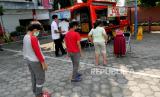 Anak-anak antre mencuci tangan sebelum menikmati layanan Mobil Internet dan Layanan Kewilayahan (Monika) milik Perpustakaan Kota Yogyakarta di Demangan, Yogyakarta, Rabu (2/6). Di Monika anak-anak bisa memanfaatkan layanan internet gratis menggunakan laptop. Selain itu, juga bisa membaca buku atau bermain bersama. Layanan ini mendatangi masyarakat dua kali dalam sehari, biasanya di tempat fasilitas umum. (FOTO : Wihdan Hidayat / Republika)