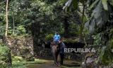 Sejumlah pengunjung menaiki gajah tunggang di Bandung Zoological Garden, Kota Bandung, Rabu (2/6). Pemerintah Kota Bandung membuka kembali enam tempat wisata mulai 2 Juni 2021 setelah ditutup sejak 23 Mei 2021 guna mengantisipasi potensi kerumunan yang dapat menyebarkan Covid-19. Foto: Republika/Abdan Syakura (FOTO : REPUBLIKA/ABDAN SYAKURA)