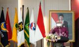 Ketua Komisi Pemilihan Umum (KPU) RI Ilham Saputra menyampaikan sambutan usai penandatanganan nota kesepahaman di Gedung KPU, Jakarta, Rabu (2/6). KPU melakukan kerja sama dengan Badan Siber dan Sandi Negara (BSSN) RI melalui penandatanganan terkait dengan perlindungan informasi dan transaksi elektronik dan PT Garuda Indonesia (Persero) Tbk terkait pemanfaatan produk dan layanan dalam penyelenggara pemilu dan pemilihan. (FOTO : Republika/Thoudy Badai)