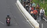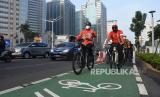 REPUBLIKA.CO.ID, JAKARTA -- Gubernur DKI Jakarta Anies Baswedan (kiri) bersepeda saat berangkat kerja menuju kantornya di Jakarta, Kamis (3/6/2021).
