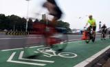 Sejumlah warga bersepeda saat berangkat bekerja menuju kantornya di Jakarta, Kamis (3/6/2021). Kegiatan Bike to Work tersebut dalam rangka memperingati Hari Sepeda Sedunia pada tanggal 3 Juni. (FOTO : ANTARA/Indrianto Eko Suwarso)