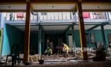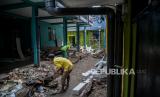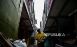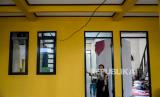 Pekerja menyelesaikan proyek pembangunan rumah panggung di Kebon Pala, Kampung Melayu, Jatinegara, Jakarta, Kamis (3/6). Sebanyak 18 unit proyek rumah panggung yang di gagas Gubernur DKI Jakarta Anies Baswedan dengan anggaran dari Baznas DKI Jakarta sebesar Rp78 juta per rumah kini sudah mencapai tahap akhir dan ditargetkan rampung bulan Juni 2021. Republika/Thoudy Badai (FOTO : Republika/Thoudy Badai)