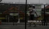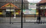 REPUBLIKA.CO.ID, Seorang warga dan anaknya berjalan di luar pagar SMA N 4 Pekalongan, Jawa Tengah, Kamis (3/6/2021). Sebanyak 37 guru dan tenaga kependidikan di SMA itu terpapar COVID-19.