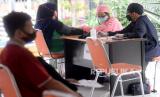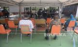 Sejumlah warga pra lansia menjalani observasi usai disuntik vaksin COVID-19 di RPTRA Matahari, Jakarta, Jumat (6/4). Pemerintah provinsi DKI Jakarta telah mulai melaksanakan vaksinasi untuk warga pra-lansia berusia 50-59 tahun. Sebab, masyarakat dalam rentang usia tersebut juga dinilai rentan terpapar COVID-19 setelah kelompok usia 60 tahun ke atas.Prayogi/Republika. (FOTO : Prayogi/Republika.)