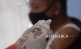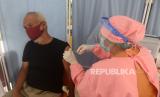 REPUBLIKA.CO.ID,JAKARTA -- Petugas kesehatan dari Puskesmas Kecamatan Cempaka Putih menyuntikan vaksin COVID-19 kepada warga pra lansia di RPTRA Matahari, Jakarta, Jumat (6/4).